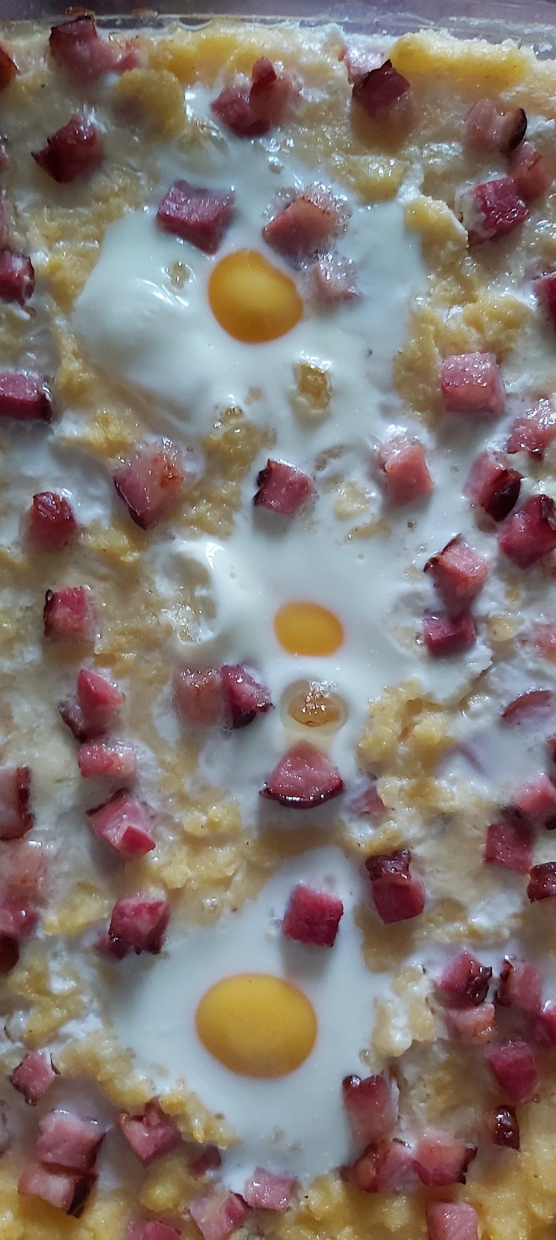 Mod de preparare: intr-un bol am mixat ouăle pana si-au dublat volumul, am adăugat laptele, uleiul treptat. Am amestecat faina cu praful de copt și sarea și am pus treptata peste amestecul cu oua pana la terminarea ingredientelor și am amestecat pana la omogenizare. Peste compoziția de mai sus am adăugat condimentele și restul ingredientelor (mezeluri, brânză și cascaval, gogoșar murat, masline și porumb) am amestecat totul bine. Am pregătit o tava (cât 2 tăvi de chec ca și lățime și lungime) în care am pus hârtie de copt, am adăugat compoziția și am decorat cu ketchup pe deasupra. Am dat tava la cuptorul preincalzit pentru aproximativ 40 minute (depinde de fiecare cuptor așa ca cel mai bun mod de a verifica este testul cu scobitoarea). Se va tăia după răcire. Pofta buna!