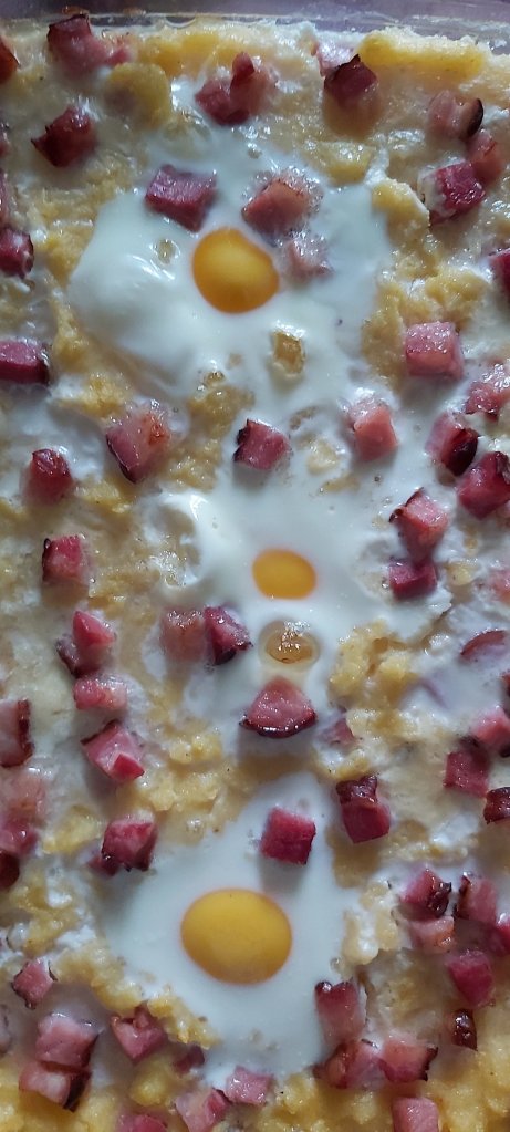 Ingrediente: 5 ouă, 150 g făină, 4-5 bucăți gogoșar murat, 5 felii mușchi file de porc, 5 felii cotlet haiducesc (puteți folosi ce mezeluri va plac), 150 g brânză telemea și 150 g branza Edam (puteti pune ce cascaval sau orice alt tip de brânză va place), 15 măsline negre fără sâmburi ( la fel si aici puteti folosi orice tip de masline), 2 linguri porumb fiert, 100 ml lapte, 3 linguri de ulei, 1 plic praf de copt, un praf de sare, jumatate linguriță boia dulce, jumătate linguriță mărar uscat, puțin oregano și ketchup pentru decor.